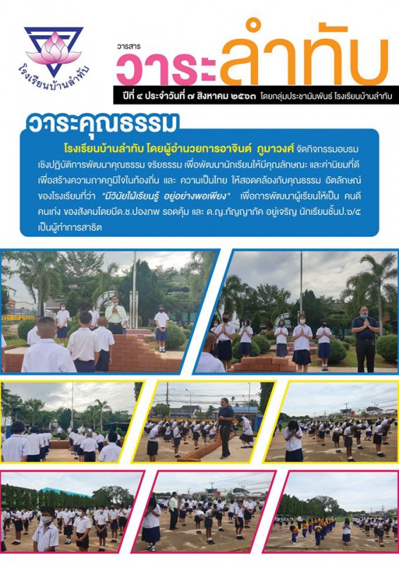 กิจกรรมอบรมเชิงปฏิบัติการพัฒนาคุณธรรม จริยธรรม เพื่อพัฒนานักเรียน